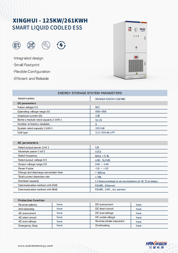 XINGHUI 시리즈 액체 냉각식 상업용 및 산업용 에너지 저장 시스템(ESS)은 Anlanbel R&D 팀이 개발한 확장 가능하고 지능적인 제품군입니다. 다양한 공급원의 재생 에너지를 저장하고 필요할 때 사용할 수 있습니다. 산업 및 상업용 그리드 수준의 사용자에게 광범위한 서비스를 제공합니다.